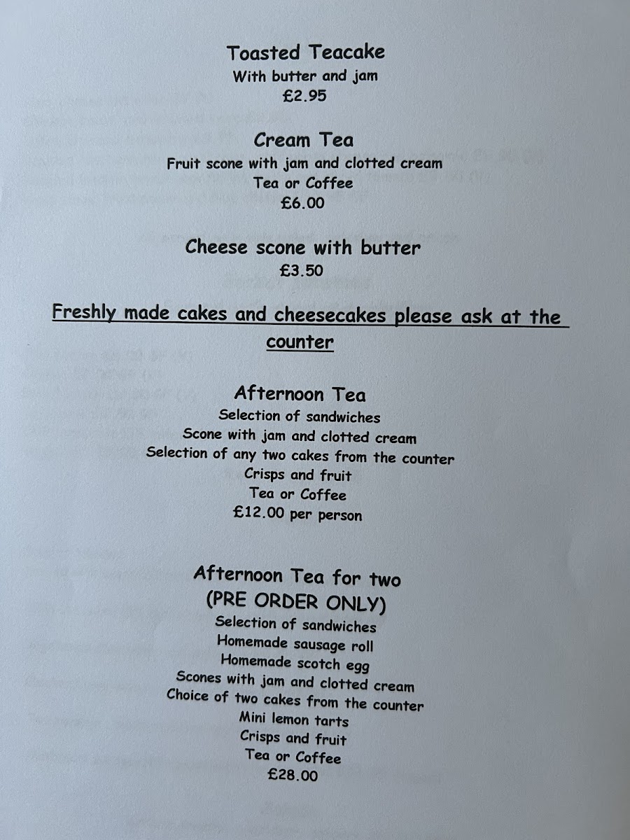 Lumsdale Tearooms Menu